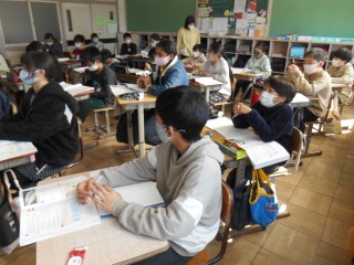 速さの問題に取り組んでいました。道のりや時間との関係をしっかりと理解し、計算できるように学習していました。