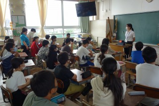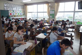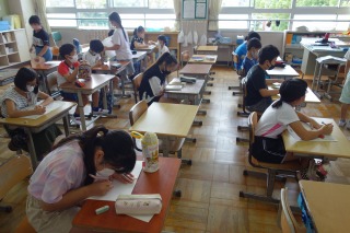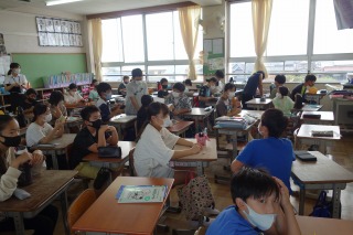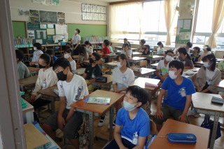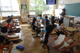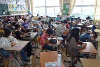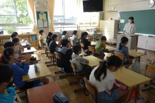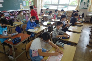 朝の教室では、みなさんが連絡帳を書いたり、朝の会のストレッチをしたり、先生のお話を聞いたりしていました。