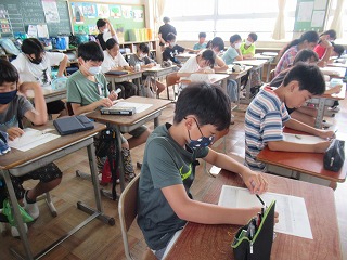 6年2組では、ありがとうのメッセージを書いているところでした。