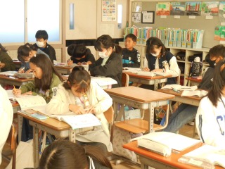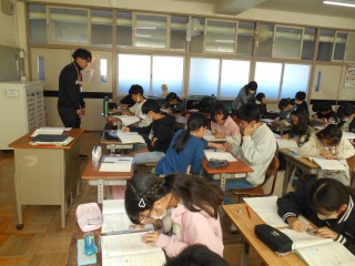 図形の拡大・縮小の学習をしていました。同じ形とはどのような条件が必要なのか、学習をしていました。