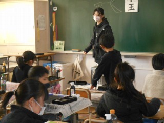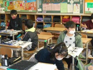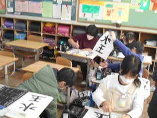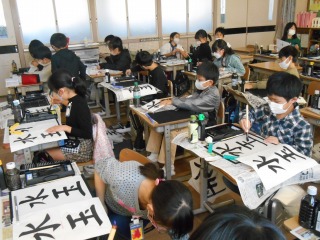 半紙に大きく、はらいやとめに気を付けて書いていました。