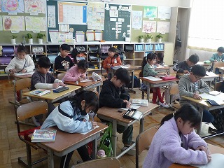 冬を感じるものをテーマに、それぞれが題名を決めて、文章と絵で表現しました。