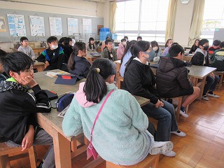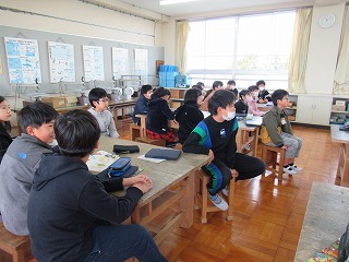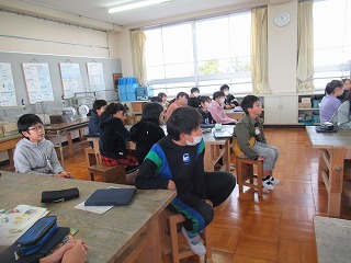 5年2組では、図画工作の時間、先生の話を聞いていました。