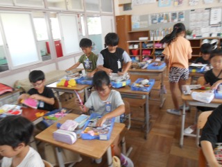 お道具箱の整理をしていました。持ち帰るものはないか、どこに何を入れると使いやすいか考えながら整頓していました。