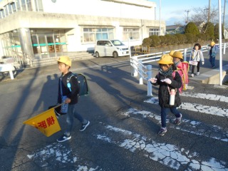 昨日までとは違い、寒い朝となりました。元気に登校してきました。