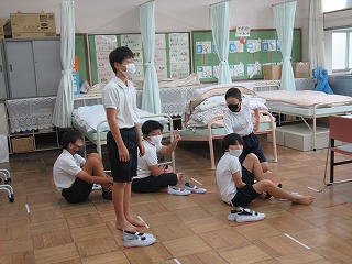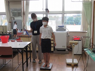 身体測定が行われていましたが、保健室内が密にならないように、交代で入室していました。6年生、大きくなりましたね。
