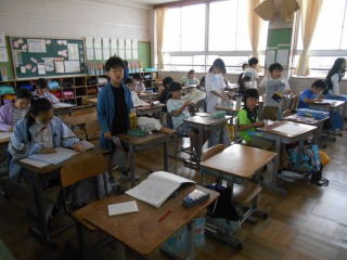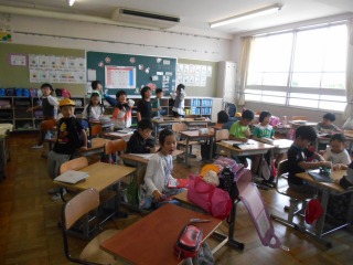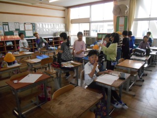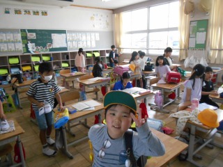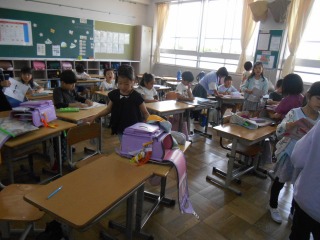 今日も元気な挨拶が返ってきました。1時間目の学級写真に間に合うように、準備をしていました。