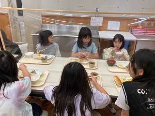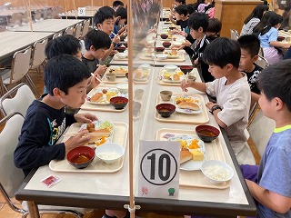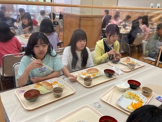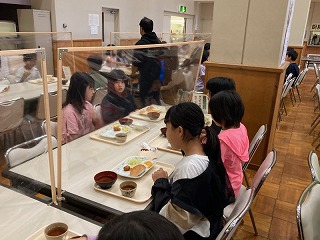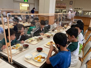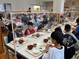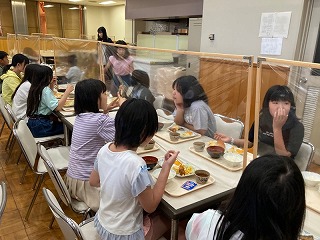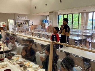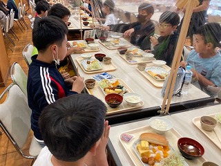 朝食の様子です。しっかり食べて、今日の活動に備えましょう。