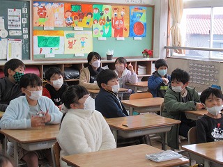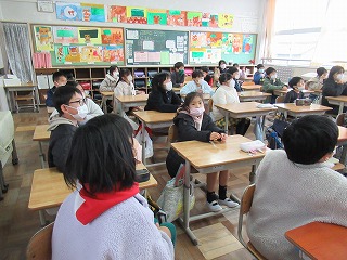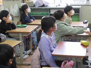 3年2組では、児童会立候補者のビデオをクラス全員で見ていました。