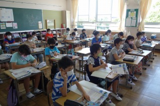 4年1組の社会は、発電所について学びました。火力発電、原子力発電、風力発電、太陽光発電、地熱発電、波力発電などがあることを学びました。
