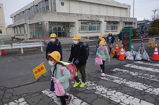 今朝も、みなさんは班で一列になって安全に登校していましたね。