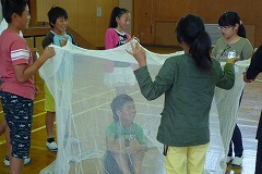 蚊帳の体験。トトロで見たことがあるけど、体験したことのある子はわずか。