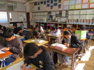 どちらのクラスも、直方体や立方体の見取り図を描いていました。定規を使い、立体の見えないところまでイメージすることができていました。