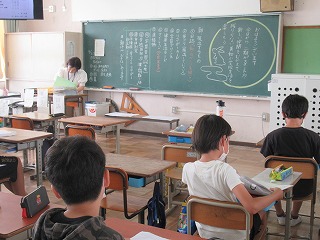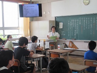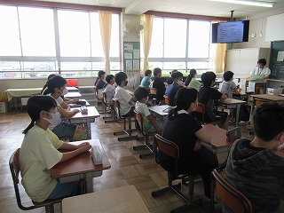 6年1組は朝礼後、教室で夏の課題の回収を行っていました。