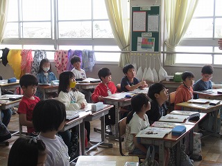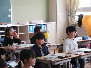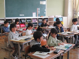 2年2組は国語の時間でした。教科書に載っている正しい姿勢のページで、よい姿勢にするとどんないいことがあるかを考えていました。