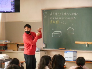 立方体や直方体の定義について、実際に作った箱や見取り図を使って考えていました。