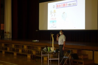 今回の学校保健委員会は、市野接骨院の市野先生を講師としてお招きして姿勢の話をしていただきました。4、5年生の子どもたちとPTAの研修委員のみなさんにお話いただきました。姿勢が良いと、どうしてよいのかがしっかりと分かりました。