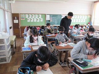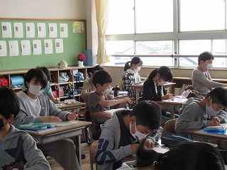 6年2組では、算数の時間、線対称の勉強をしていました。