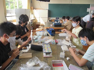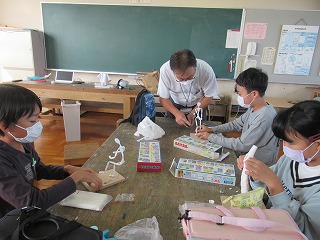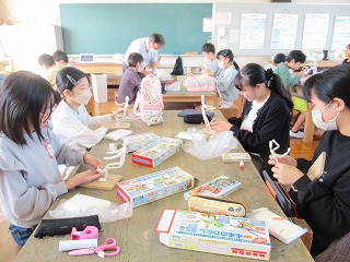 6年1組は、図工の時間でした。紙ねん土でつくる自分の未来の姿も最終段階に入り、色を付けている児童がたくさんいました。中には、ねん土に絵の具を混ぜて、カラーねん土を作り、それを貼り付けている児童もいました。
