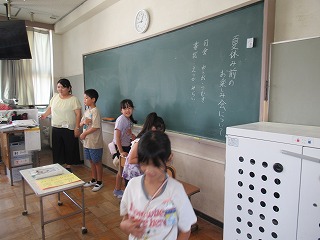 3年1組では、夏休み前のお楽しみ会について学級会を行うところでした。