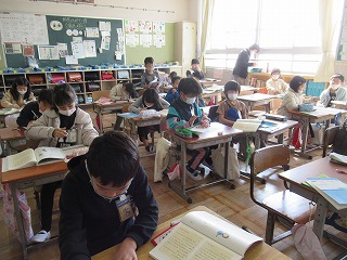 2年2組では、国語の時間、友達のよいところを書くという活動をしていました。