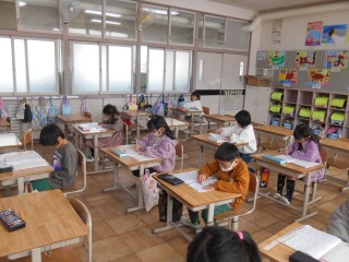 かたかなの練習をしていました。シ、ン、ソなど、しっかり区別をして書く練習をしていました。