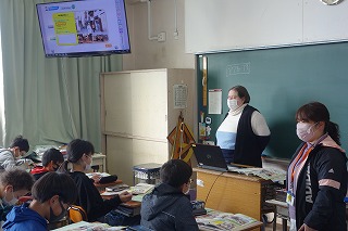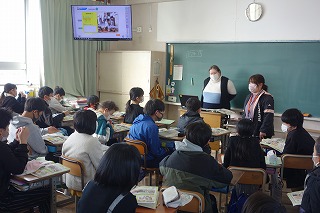6年2組の外国語は、日本以外の国と日本との違いの話を聞きました。