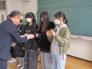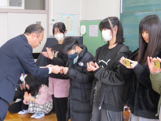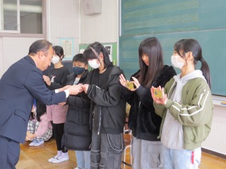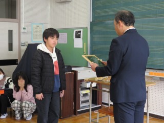 寒い日が続いていますので、本日もリモート朝礼としました。今日の表彰は、「私とみんてつ」広報委員長賞、「税に関する絵はがきコンクール」入選、新体力テスト体力賞の3つを披露しました。