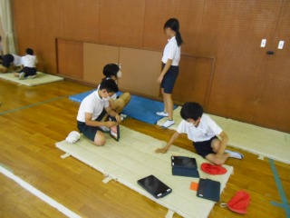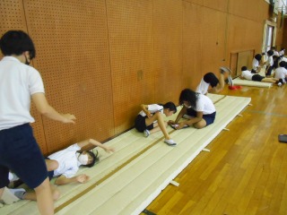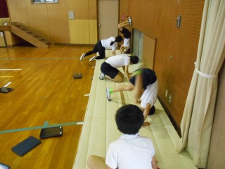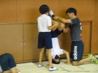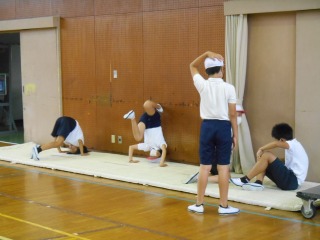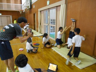 三点倒立から、倒立を行う練習をしていました。勇気をもって、逆立ちしていました。
