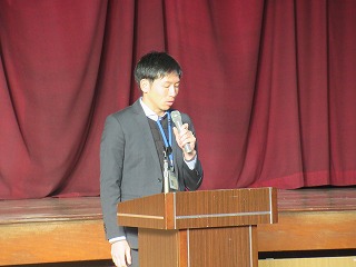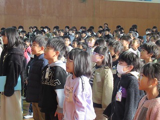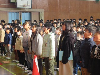 生徒指導担当の先生の話を聞きました。冬休み安全に生活してくださいね。また、最後は、全校で校歌を歌いました。