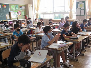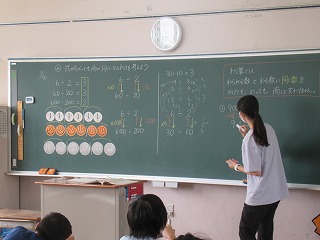 4年1組では、算数の授業が行われていました。わり算についてです。みんな落ち着いて学習に取り組んでいました。