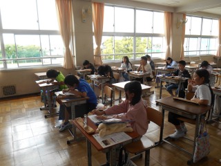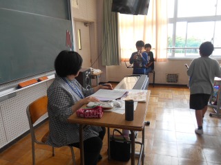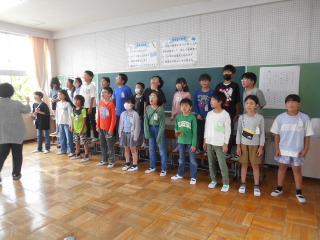 リコーダーのテストを行っていました。「しっかり練習してきた」と言いながら、一生懸命に演奏していました。最後は、手作り合唱台で力いっぱい歌って教室へ戻りました。