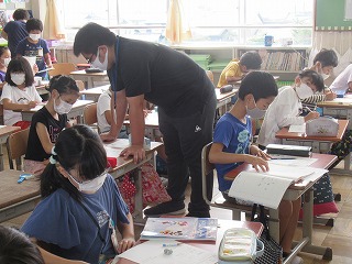 3年2組では、算数の授業が行われていました。担任の先生やTTの先生が丁寧に教えてくれます。