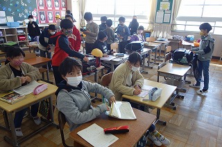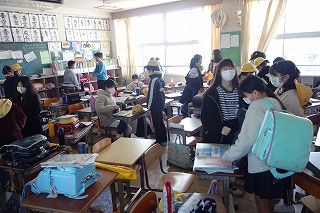 朝の教室では、みなさんがランドセルから学習用具を出したり、連絡帳を書いたりしていました。