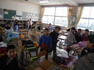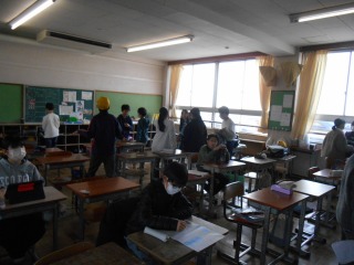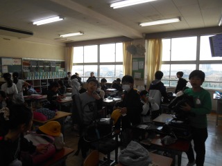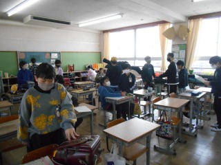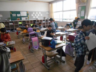 どの教室もにぎやかです。一日の準備をしています。