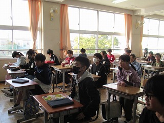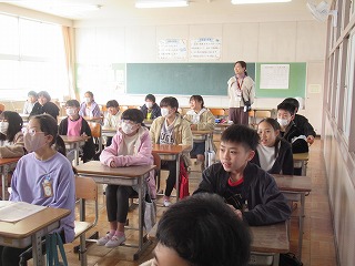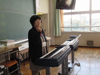 5年2組では、音楽室で音楽の授業が行われるところでした。発声の仕方を先生に教えてもらっていました。