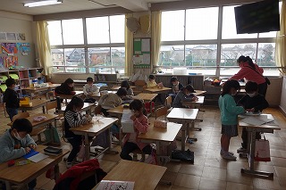 1年1組の学級活動は、折り紙をしました。みんなで協力して作品作りをしました。