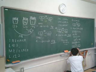 ファーストフード店でのポテトの値段、サイズなどを四角で表し、どんな式ができるかを考えていました。