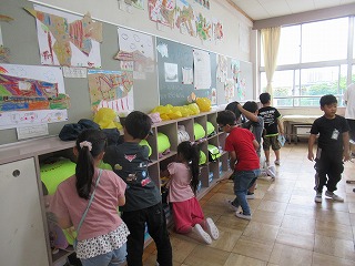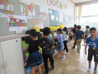 1年2組では、ロッカーの荷物の整頓を自分で行っていました。
