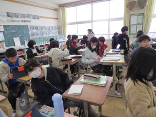授業の振り返りをしていました。単元で学んだことや次に学びたいことを、ワークシートに書いていました。