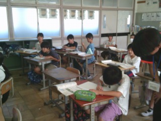 割合の単元を学習していました。単元最後の問題を答え合わせし、復習のプリントに取り組もうとするところでした。