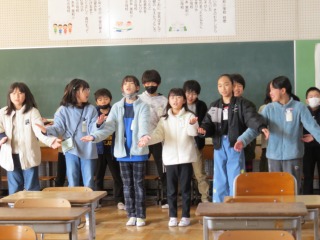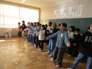 振り付けを付け加えながら歌っていました。振り付けは子どもたちが考えたようです。とても楽しそうでした。