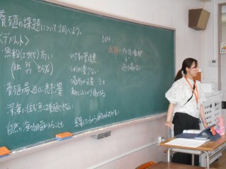 海の養殖漁業について学習をしていました。天候が変動する昨今、とても大切な産業です。