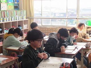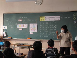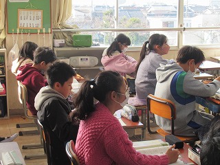 5年2組は算数の時間でした。割合の表からグラフを書く方法を学習していました。