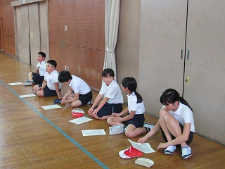 6年生は体育の時間でした。本日は6年2組がシャトルランの計測を行い、明日の1時間目に1組が計測を行うようです。シャトルランは持久力を計測する種目なので大変ですが、自分の力を発揮してもらいたいと思います。