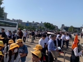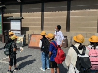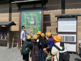 きれいな空が広がっています。二条城へ到着しました。観光客が多くみられます。タクシーの運転手さんが、施設の説明をしながら一緒に回ってくださいます。