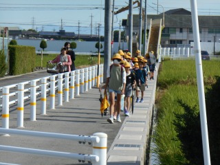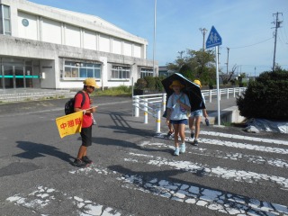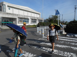 今日は出校日です。7月に比べると、少しだけ涼しさを感じる朝でした。今日も見守り隊や保護者の方に見守られながら、元気に登校してきました。
