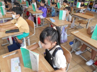 「おおきなかぶ」を、間をあけながら読む練習をしていました。