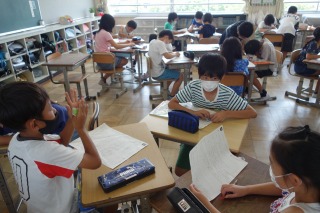 3年1組の国語は、「はじめて知ったことを知らせよう」の学習でした。グループになって、自分が知ったことを仲間に発表しました。