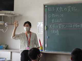 5年2組では、理科の授業が行われていました。天気について学習していました。